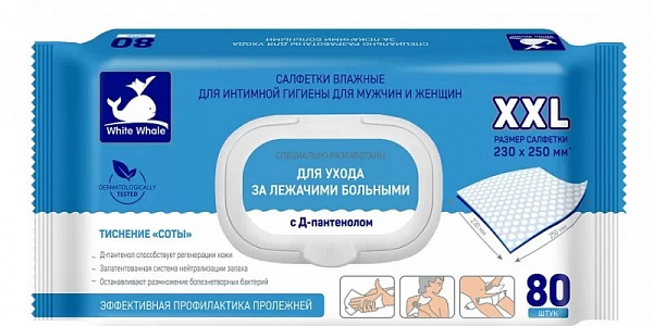 Салфетки влажные White Whale для интимной гигиены с экстрактом Каланхоэ 80 шт АВАНГАРД Салфетки влажные для интимной гигиены мужчин и женщин содержат экстракт каланхое. Салфетки специально разработаны для ухода за лежачими больными. Универсальные: для мужчин и женщин. Салфетки очищают кожу, удаляя остатки мочи и выделений, сохраняя при этом естественный баланс pH. Входящие в состав пропитывающего раствора компоненты способствуют быстрому заживлению воспалений, обладают мощным бактерицидным свойством, останавливают размножение болезнетворных бактерий, нейтрализуют запах. Они безопасны для ежедневного использования и удобны для переноски в сумочке. В упаковке 80 штук, что обеспечит достаточное количество на длительное время. Незаменимы для быстрого и удобного очищения кожи без использования воды и моющих средств Для временного устранения неприятных ощущений, очищение кожного покрова. Содержащийся в составе пропитывающего раствора аллантоин способствует быстрому заживлению воспалений Экстракт Каланхоэ обладает мощным противовоспалительным и бактерицидным свойством и применяется для профилактики опрелостей и пролежней. Д-Пантенол - способствует регенерации кожи Салфетки останавливают размножение болезнетворных бактерий Запатентованная система нейтрализации запаха . Состав Нетканое полотно, пропитывающий лосьон. Состав пропитывающего лосьона: вода деминерализованная, цетеарил изононаноат, цетеарет-20, цетилстеарил, глицерин, глицерил стеарат, цетил пальмитат, цетеарет-12, пропиленгликоль, алкилполиглюкозид, феноксиэтанол, бензоат натрия, отдушка, ЭДТА, ундециленамидопропилтримониум метосульфат, аллантоин, экстракт каланхоэ, д- пантенол. mah /upload/iblock/6cd/6cdd327ee2ba52c219044af9f9ebb0cc.jpg